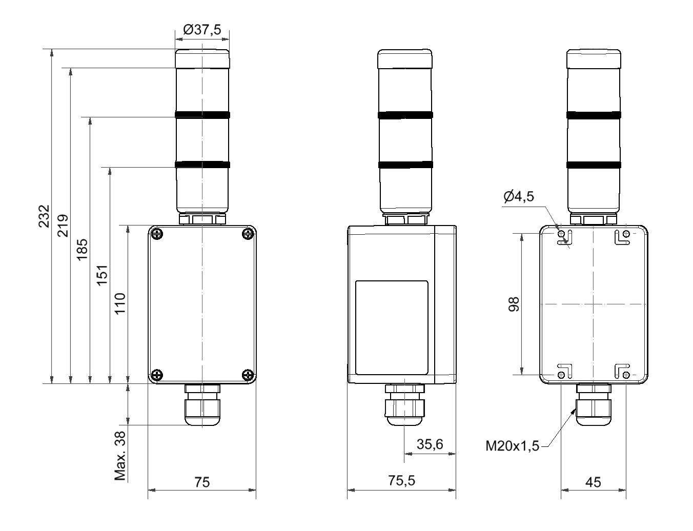 - Height 232 mm